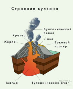 Для решения этого задания необходимо вспомнить строение вулкана (смотрите рисунок).