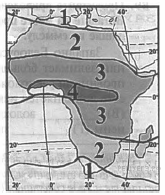 Установите соответствие между характеристикой климатического пояса Африки и его местоположением, отмеченным на карте цифрой: