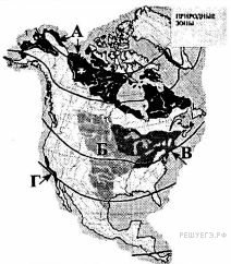 Установите соответствие между природными зонами, отмеченными на карте цветом и буквами, и их характеристиками:
