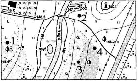 Туристы устроили привал на границе смешанного леса и вырубки. Место привала на плане местности отмечено точкой с цифрой: